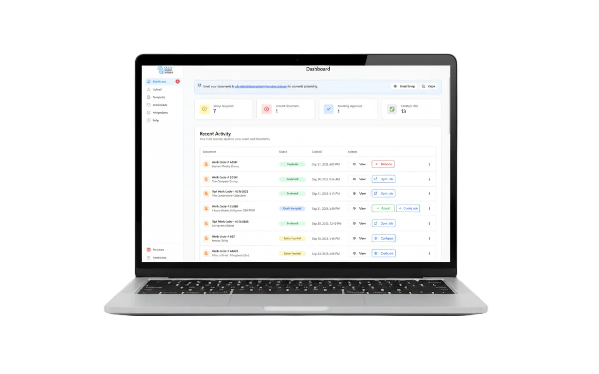 Email, Upload, process, and manage your work order documents with our powerful AI-driven platform. Seamlessly integrates with job management platforms.